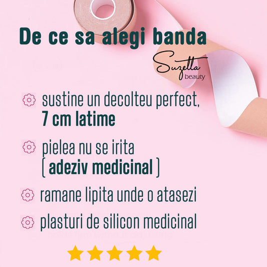 Banda pentru sani 7.5cm x 5m cu plasturi din silicon, contine adeziv medical, hipoalergenic - SuzettaBeauty®